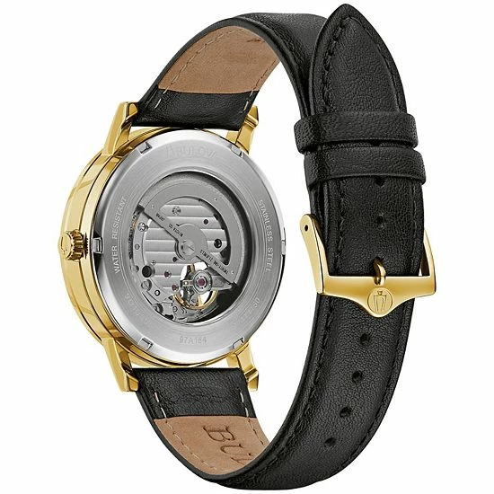 A nifty open-aperture design on the dial offers a glimpse at what makes this men’s automatic watch from Bulova tick.