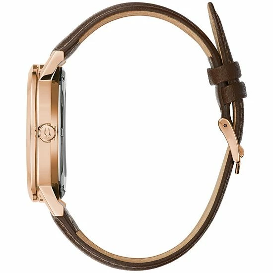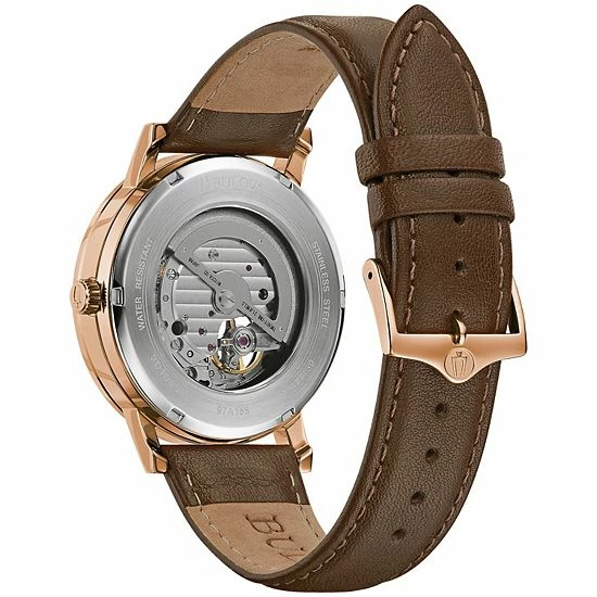 A nifty open-aperture design on the dial offers a glimpse at what makes this men’s automatic watch from Bulova tick.