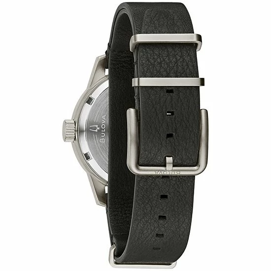 Featuring a rugged black leather NATO strap and a timeless design, this men’s watch from Bulova’s Military collection is the perfect choice when you want to keep your look casual.