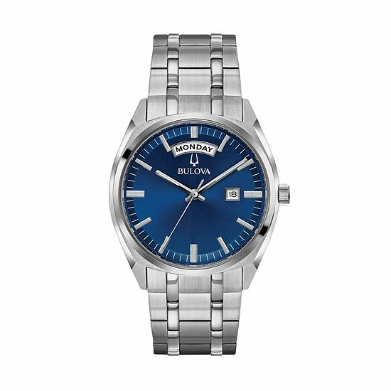 A striking bright blue sunray dial adds a contemporary touch to this men’s watch from Bulova’s timeless Classic collection.