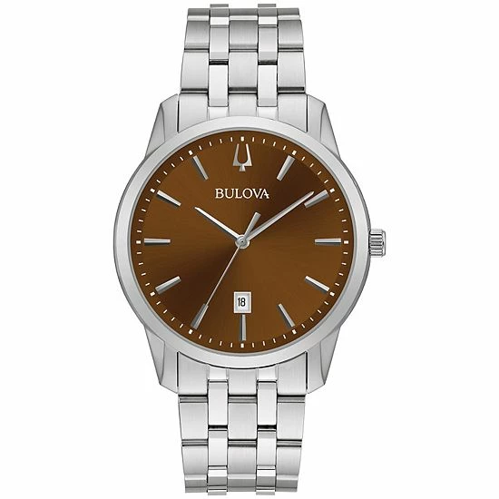 From the Classic Sutton collection, this Bulova watch features a stainless steel case and bracelet with a rich brown dial.
