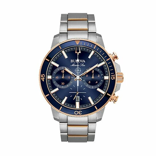 From Bulova’s prestigious Marine Star collection, this sharp-looking men’s watch features the ultimate combination of precision craftsmanship, rugged durability and timeless style.