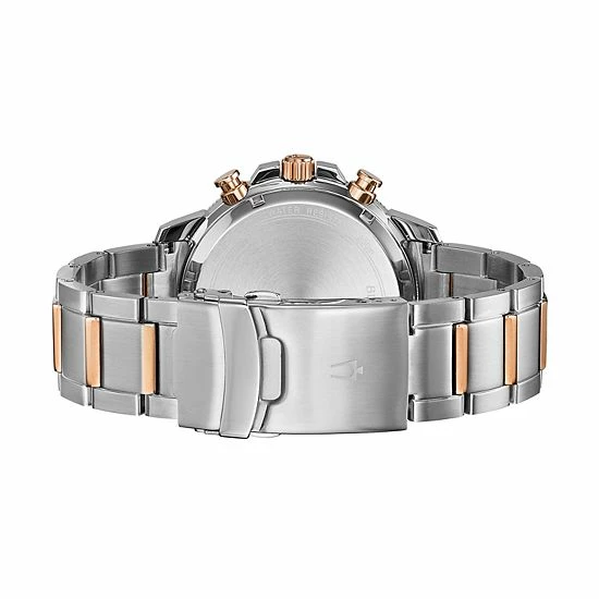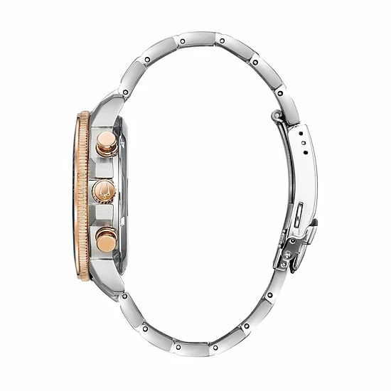 - Material: silver- & gold-tone stainless steel with blue bezel & screw-down back