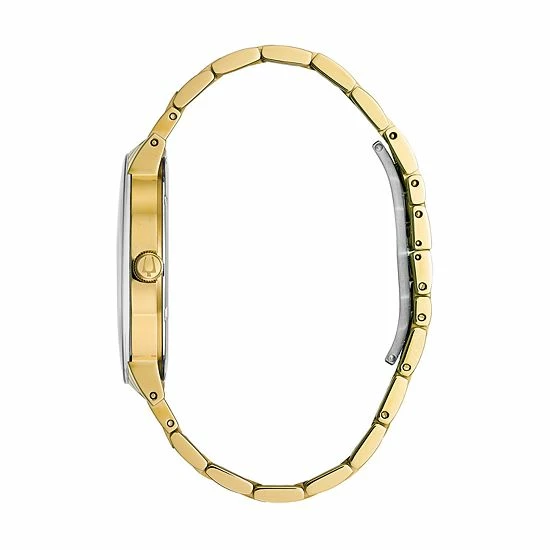Diamond-accent hour markers dot the striking sunray dial on this men’s Bulova watch, giving it a luxurious look.