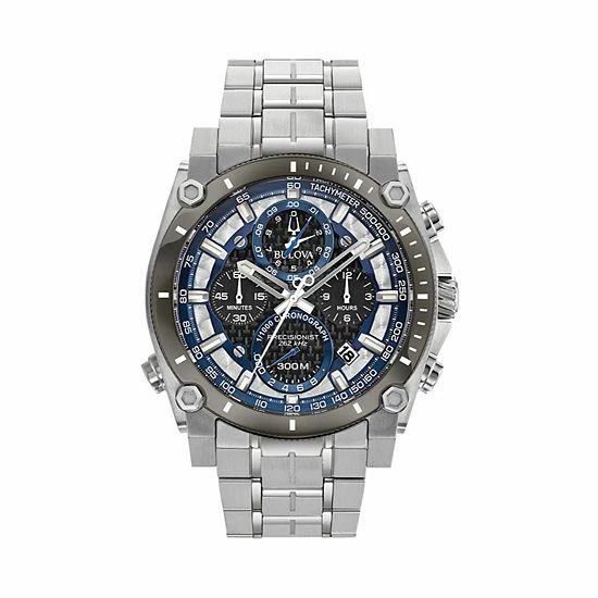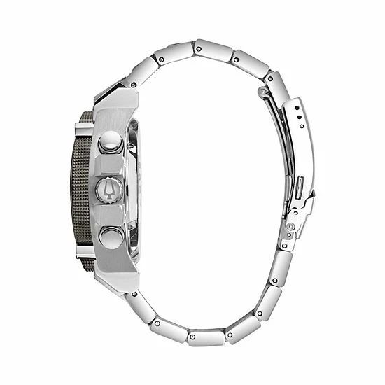 Powered by Bulova’s unparalleled Precisionist quartz movement, this remarkable men’s chronograph watch masterfully blends form and function with an emphasis on precision, accuracy and sophistication.