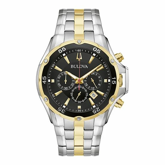 From the Classic Collection, this Bulova men’s two tone stainless steel chronograph watch offers timeless, classy style.