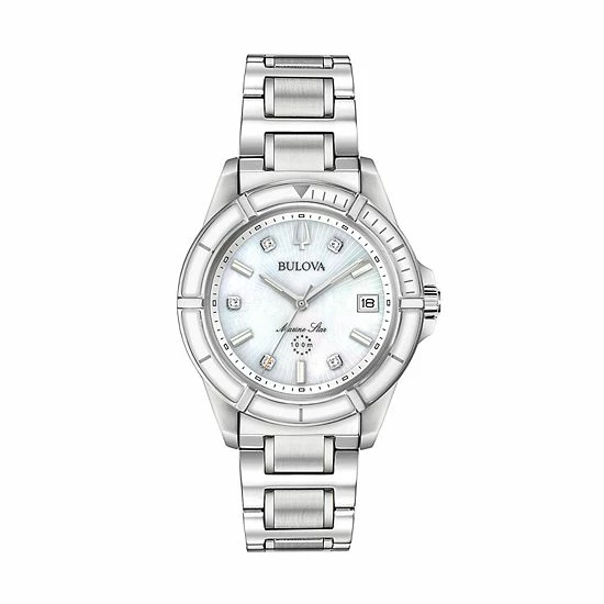 Give your look a glamorous touch with this gorgeous women’s diamond-accent watch from Bulova’s exclusive Marine Star collection.