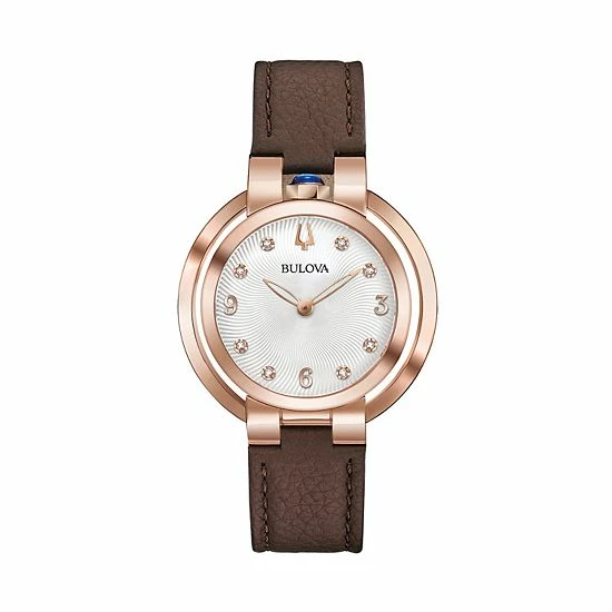 From its iconic dye struck “Lady Ganga” dimensional case back to its diamond-accented guilloche dial, this women’s watch from Bulova’s exclusive Rubaiyat collection is simply stunning.